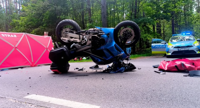 Dwie osoby podróżujące motocyklem zostały ranne w wypadku, do którego doszło na drodze krajowej nr 58 na trasie Zgon – Stare Kiełbonki.