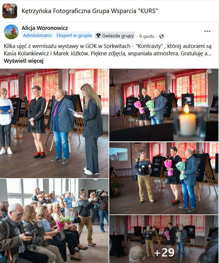W środę, 15 kwietnia, w Gminnym Ośrodku Kultury w Sorkwitach odbył się wyjątkowy wernisaż wystawy fotografii „Kontrasty”, której autorami są Katarzyna Kolankiewicz oraz Marek Jóźków. Wydarzenie przyciągnęło grono miłośników fotografii, sztuki i lokalnych inicjatyw kulturalnych.