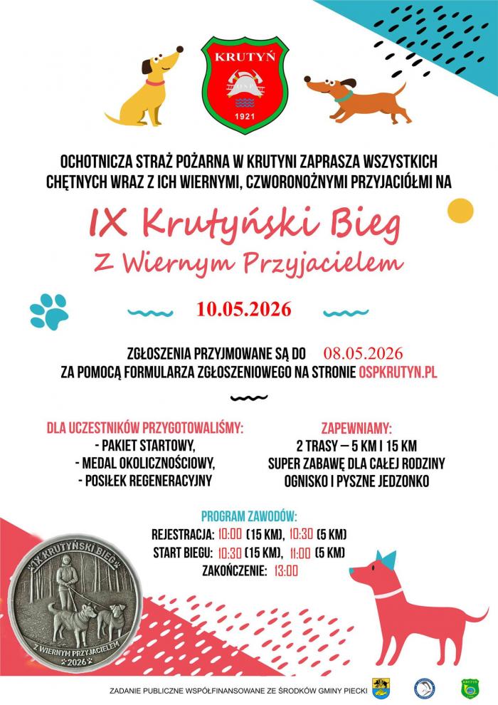 W Krutyni ponownie zrobi się sportowo i rodzinnie. Ochotnicza Straż Pożarna w Krutyni zaprasza na IX Krutyński Bieg z Wiernym Przyjacielem, który odbędzie się 10 maja. Wydarzenie łączy aktywność fizyczną, miłość do zwierząt i promocję mazurskiej przyrody.