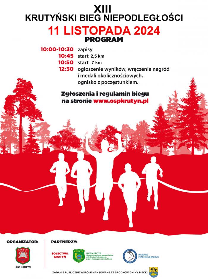 Już po raz trzynasty mieszkańcy Krutyni oraz okolicznych miejscowości spotkają się, by wspólnie świętować Narodowe Święto Niepodległości na sportowo, uczestnicząc w Krutyńskim Biegu Niepodległości.
