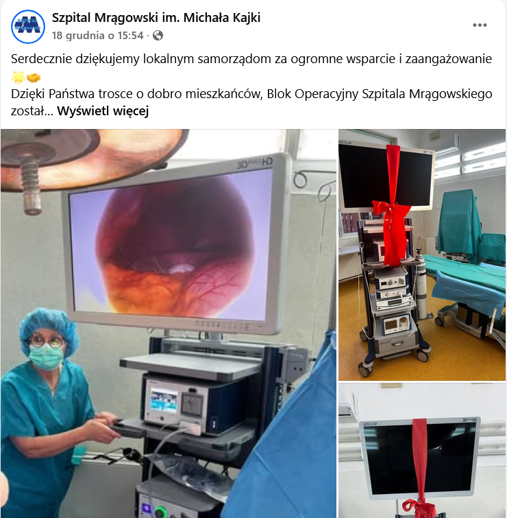 Zakup sprzętu był możliwy dzięki wsparciu finansowemu Powiatu Mrągowskiego, Miasta Mrągowo oraz gmin: Mrągowo, Sorkwity i Piecki. Władze Szpitala Mrągowskiego dziękują samorządom za zaangażowanie i podkreślają, że jest to konkretna odpowiedź na wyzwania, z jakimi na co dzień mierzy się ochrona zdrowia.