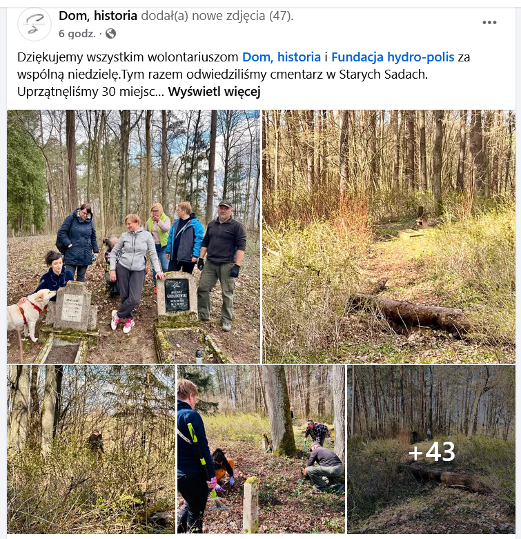 Niedzielę wolontariusze z grupy Dom, historia oraz Fundacja Hydro-POLIS spędzili w wyjątkowy sposób – porządkując zabytkowy cmentarz w Starych Sadach. To kolejna inicjatywa, która pokazuje, jak ważna jest troska o lokalne dziedzictwo i pamięć o dawnych mieszkańcach regionu.