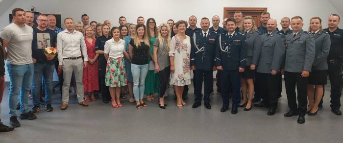 Gratulacje i podziękowania odchodzącej na emeryturę koleżance złożył komendant powiatowy insp. Andrzej Parniewicz, I zastępca komendanta podinsp. Marek Dumka, a także funkcjonariusze oraz pracownicy cywilni komendy.