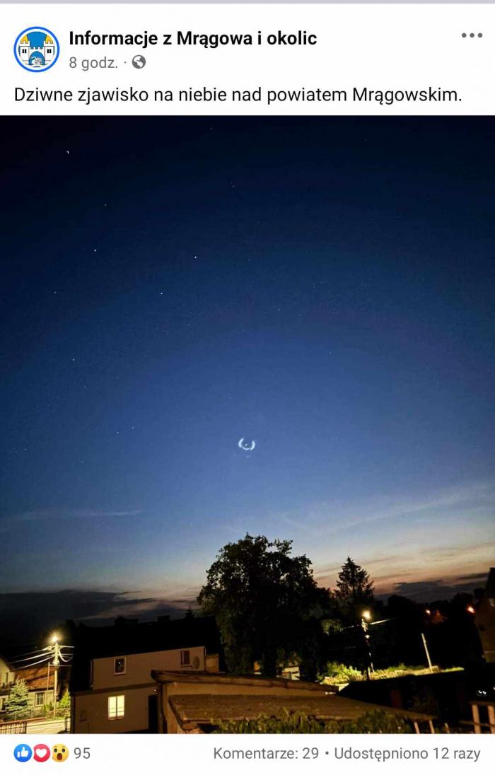Było już sporo po godz. 23:00 kiedy w mediach społecznościowych na jednej z lokalnych stron pojawiło się zdjęcie nocnego nieba i wpis o "dziwnym zjawisku na niebie".