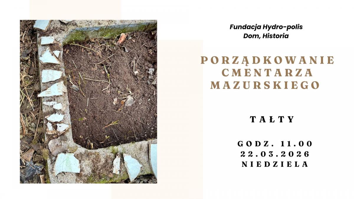 Społecznicy z inicjatywy Dom, historia oraz Fundacji Hydro-polis zapraszają wolontariuszy do udziału w kolejnej akcji sprzątania mazurskich cmentarzy. Spotkanie zaplanowano na niedzielę, 22 marca o godz. 11:00 na cmentarzu w Tałty w gminie Mikołajki.