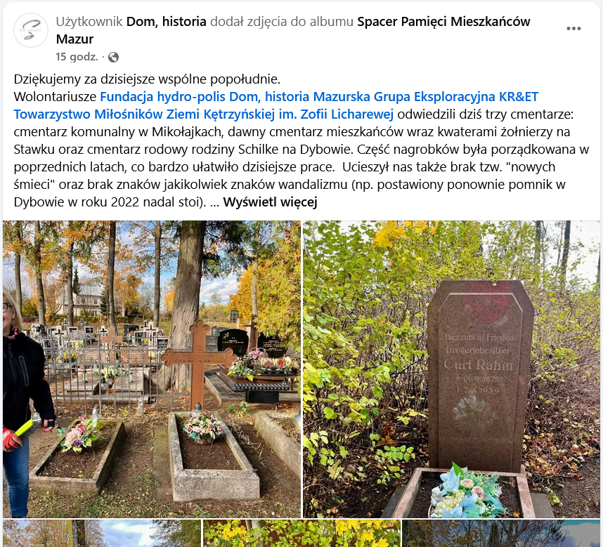 Wolontariusze z kilku organizacji – Fundacji hydro-polis, Dom, historia, Mazurskiej Grupy Eksploracyjnej KR&ET oraz Towarzystwa Miłośników Ziemi Kętrzyńskiej im. Zofii Licharewej – odwiedzili trzy historyczne cmentarze w regionie Mikołajek.