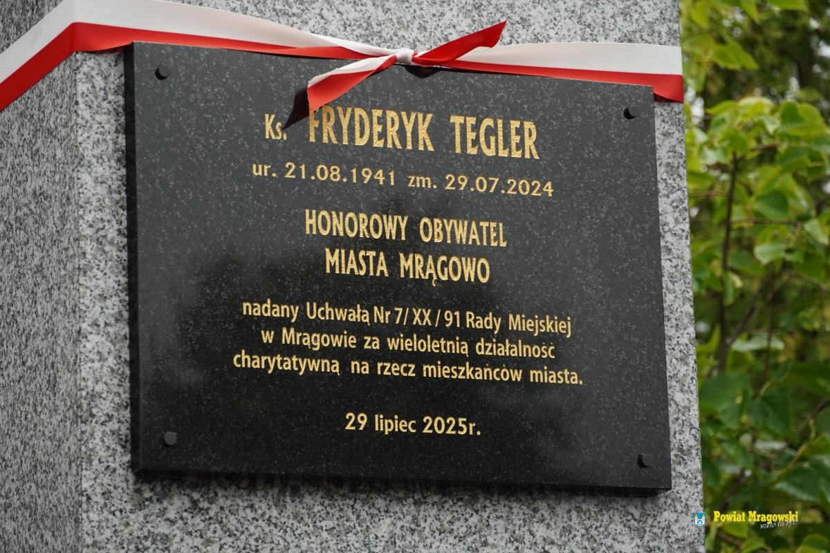 Na cmentarzu komunalnym w Mrągowie odsłonięto tablicę upamiętniającą pastora Fryderyka Teglera, Honorowego Obywatela miasta. Pastor znany z działalności charytatywnej i społecznej zmarł rok temu, pozostawiając po sobie wiele dobrego. Uroczystość zgromadziła liczne grono przyjaciół i mieszkańców, którzy wspominali jego osobę i zasługi dla społeczności. Tablica stanowi symboliczny gest wdzięczności oraz przypomnienie o wartościach, którymi Pastor Tegler kierował się przez całe życie.