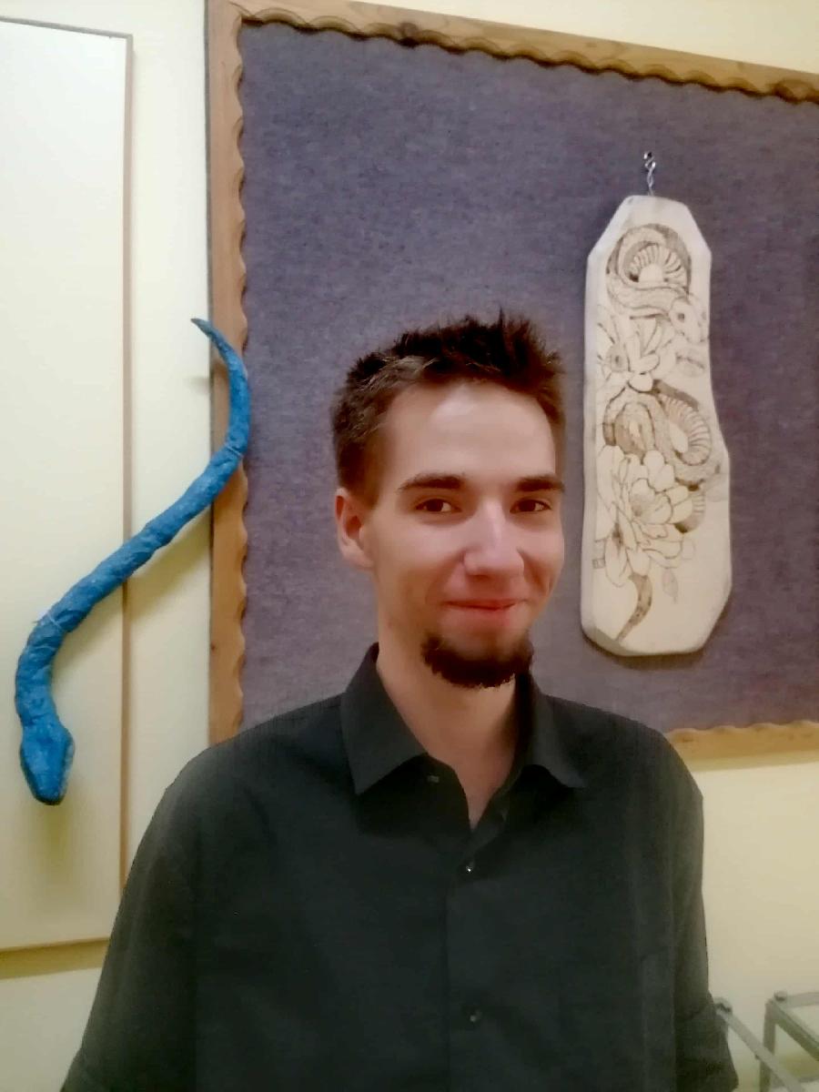 Dawid Górecki, młody twórca z pasją, zaskakuje swoimi drewnianymi eksponatami i papierowymi kreacjami. Inspirowany naturą, wciąż rozwija swoje umiejętności. Choć to jego pierwsza wystawa, widać w nim talenty i determinację. W rozmowie z nim widać prawdziwą pasję i skromność. Wystawa w Powiatowej Bibliotece Pedagogicznej to nie tylko prezentacja prac, ale także historia człowieka, który znalazł w sztuce ukojenie. A. Pacek.